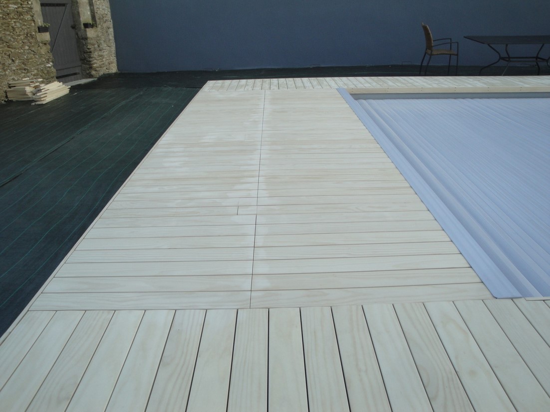 Réalisation d'une plage de piscine en lames d'ACCOYA sur structure aluminium