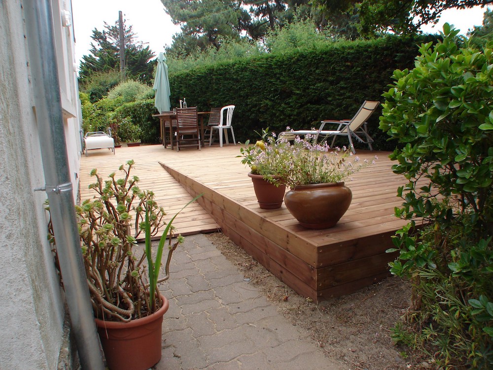 La terrasse sur pilotis permet de créer une extension en hauteur et d’exploiter les terrains en pente ou les maisons à demi-niveau.