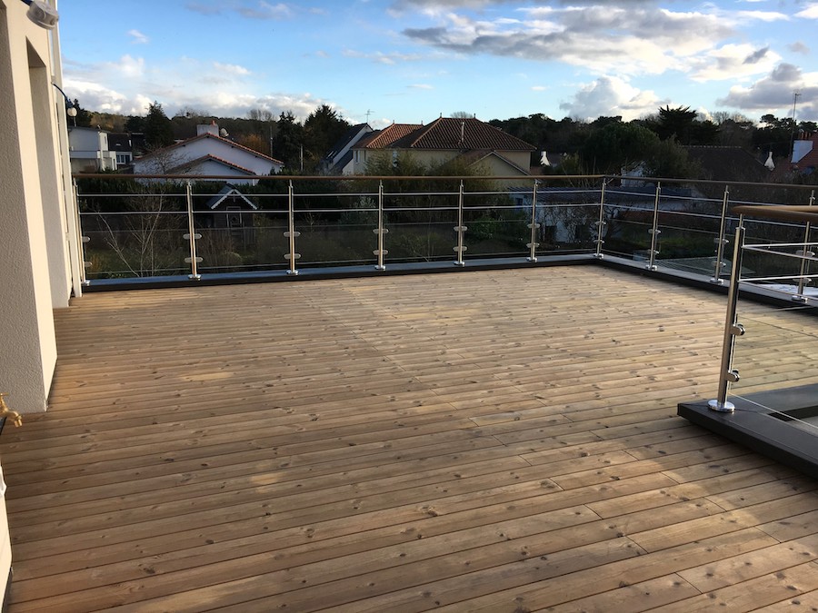 accompagne dans la pose de terrasse sur mesure à Nantes et en Loire-Atlantique. Que vous souhaitiez une terrasse en bois, une terrasse composite ou un aménagement en grès cérame, nous concevons des solutions durables adaptées à chaque configuration : terrasse sur plots, sur dalle de béton, sur pilotis ou sur sol stabilisé. Grâce à une ossature technique performante (structure aluminium, plots réglables, fixation invisible), nous garantissons solidité, esthétisme et longévité. Chaque projet de terrasse extérieure est étudié avec précision afin d’optimiser la durabilité, l’évacuation des eaux et le confort d’usage, même pieds nus autour d’une piscine.