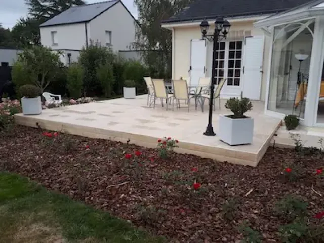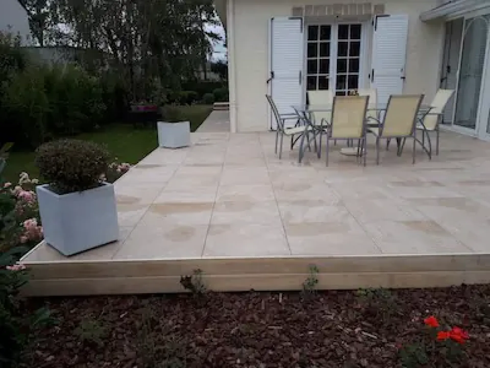 La solution pour rénover cette terrasse carrelée qui se détériorait (flocage des carreaux, joints qui se désagrègaient) a été de la recouvrir par des dalles en grès cérame supportées par une structure en aluminium.